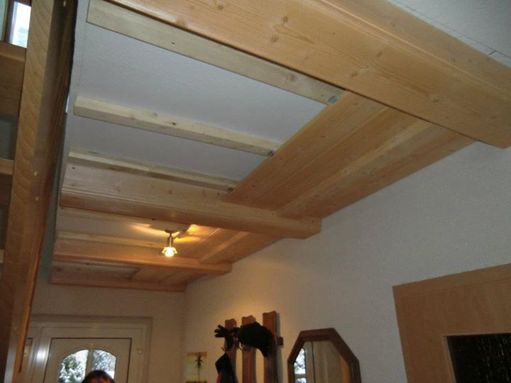 Hier habe ich eine Holzdecke gebaut und hinterher die Wände mehrfarbig in Erdtönen gestrichen!