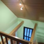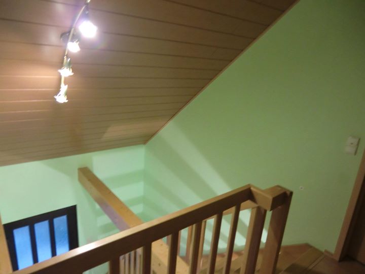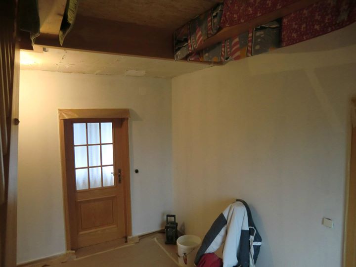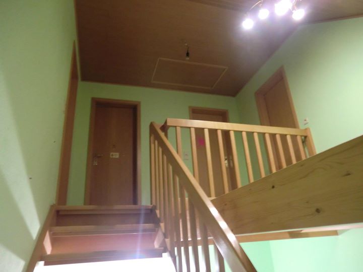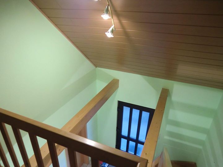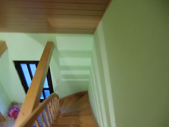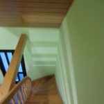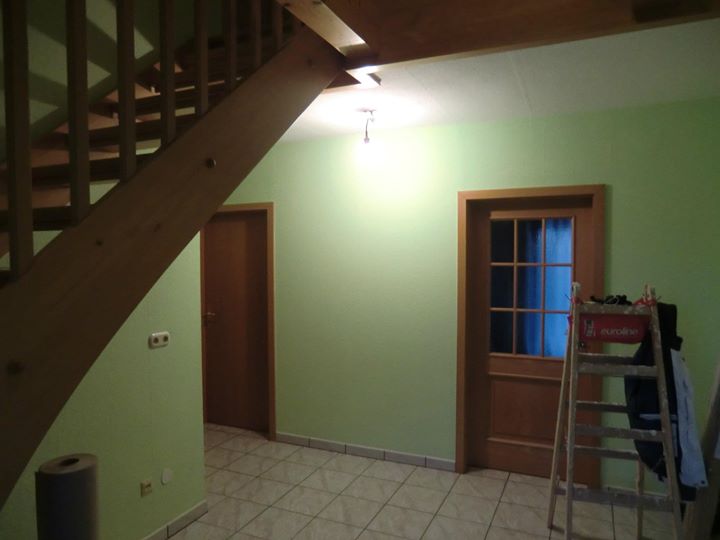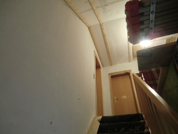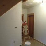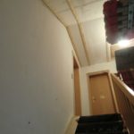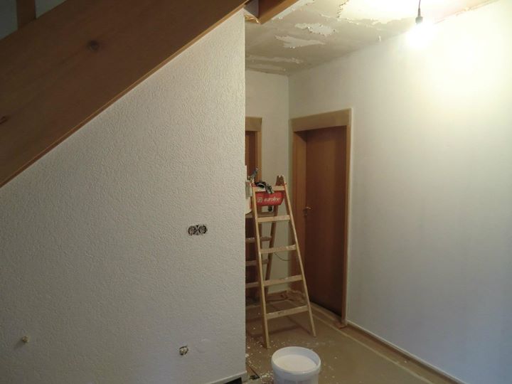 Ein Treppenhaus vor, während und nach der Renovierung.